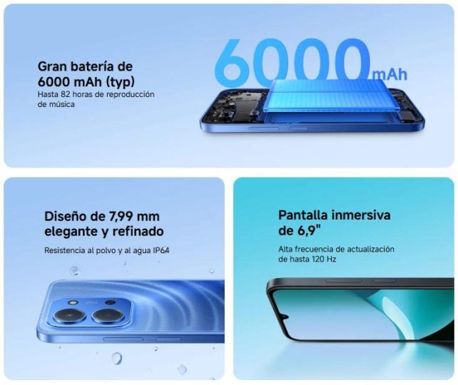 - Batería: 6000 mAh con soporte para carga rápida de 33W.